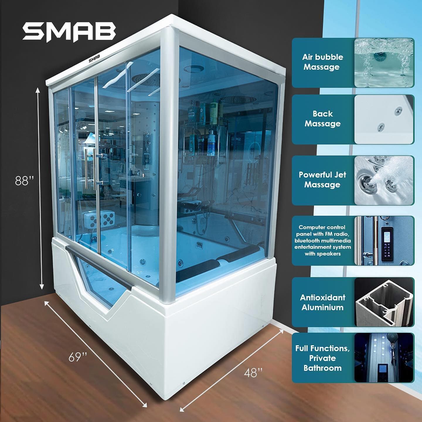 Introducing the 8856 Steaming Shower Room with Jacuzzi Massage Bathtub an ultimate sanctuary designed for luxury, comfort, and rejuvenation. Whether you want to unwind after a long day, soothe tired muscles, or simply enjoy a spa-like experience in the privacy of your home, this sophisticated system has everything you need to create the perfect home spa.